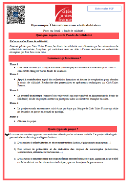 Fiche repère : Fonds de solidarité de Cités Unies France
