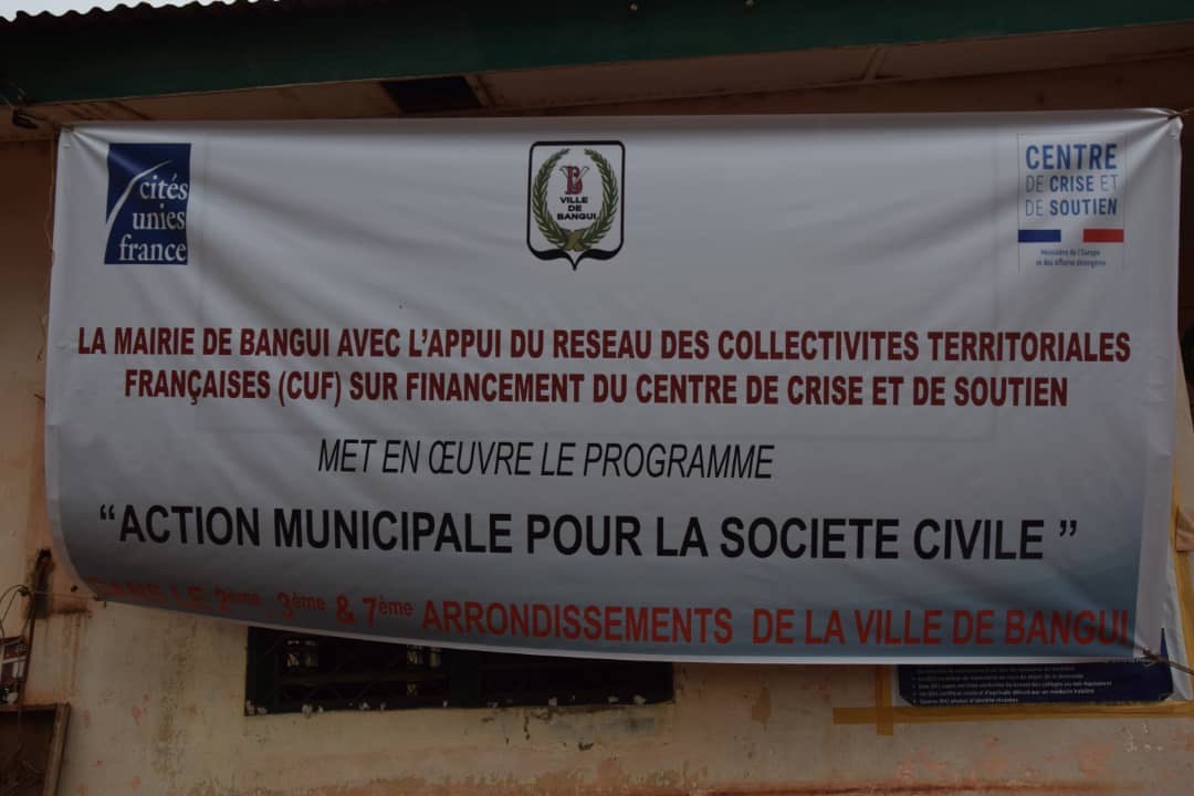 Le programme intitulé : « Action municipale pour la société civile », vise à accompagner la Mairie de Bangui et 3 arrondissements de la ville à définir des priorités pour des actions pilotes en direction de la jeunesse, dans une perspective de contribution à la réconciliation et la stabilisation mais aussi en prévision d’une future décentralisation du Pays.
